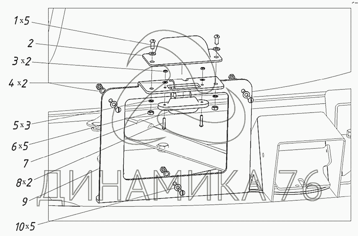 Перечень комплектующих от Установка номерного знака на ТХ-270 / 300
