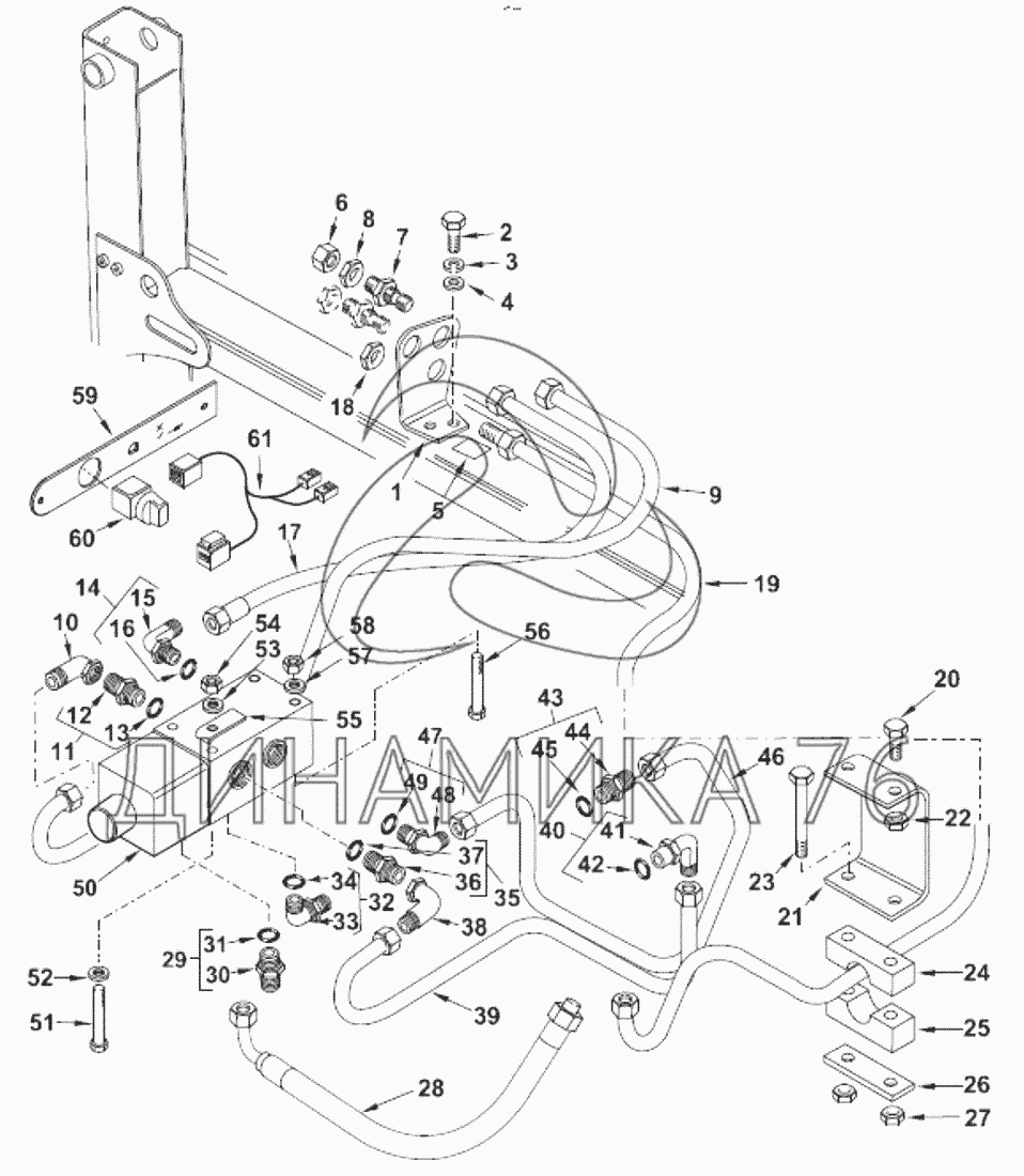 Перечень комплектующих от Дополнительная гидравлическая линия - дивертер шасси на TLB 825