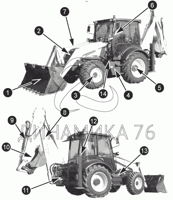 Перечень комплектующих от Эскаватор погрузчик на TLB 825