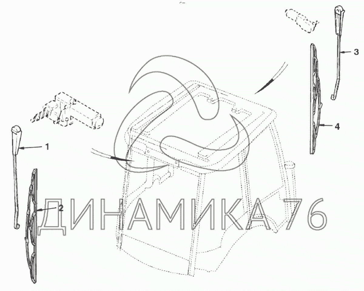 Перечень комплектующих от Стеклоочиститель переднего стекла на TLB 825