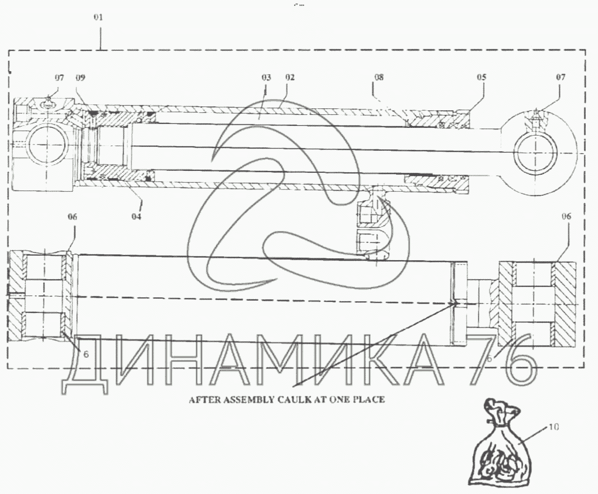 Перечень комплектующих от Цилиндр ковша на TLB 825
