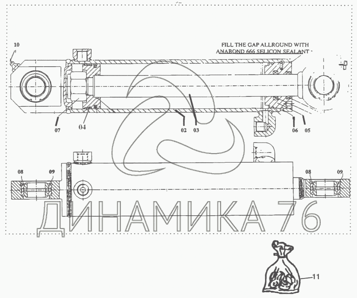 Перечень комплектующих от Цилиндр управления на TLB 825