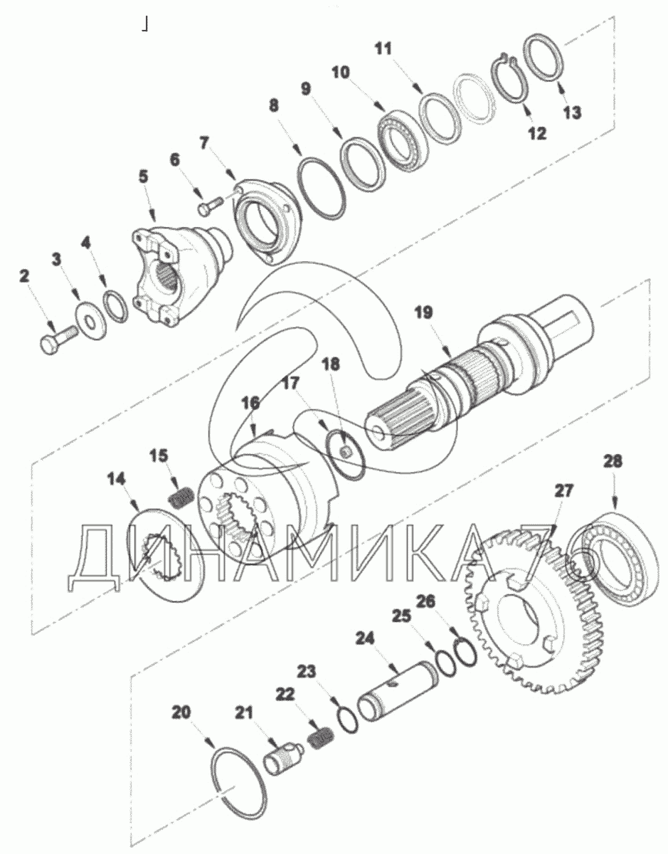 Перечень комплектующих от Выходной вал КПП передний на TLB 825