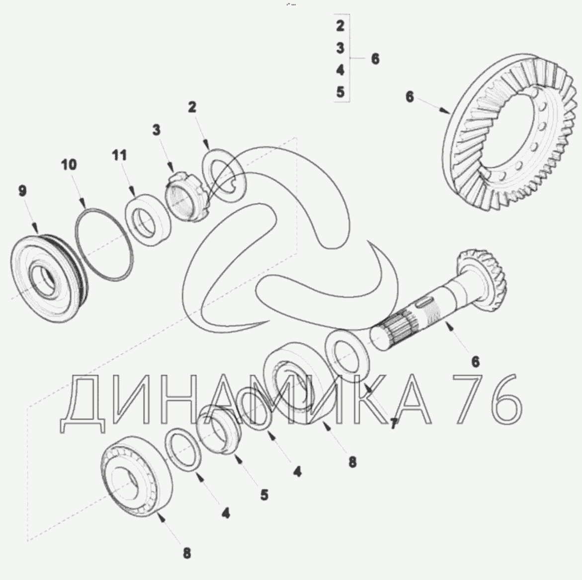 Перечень комплектующих от BEVEL GEAR на TLB 825