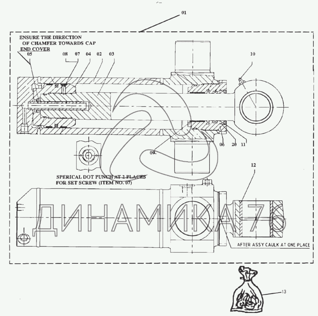 Перечень комплектующих от SWIVEL CYLINDER/55 D. на TLB 825