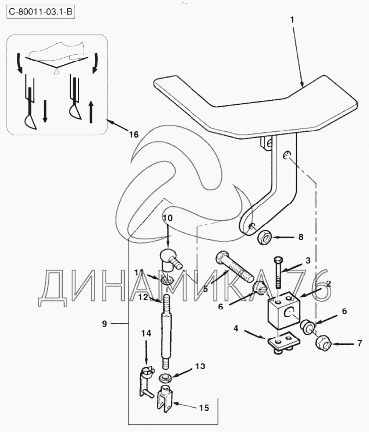 Перечень комплектующих от ПЕДАЛЬ ДОПОЛНИТЕЛЬНАЯ ГИДРАВЛИЧЕСКАЯ ЛИНИЯ на TLB 825
