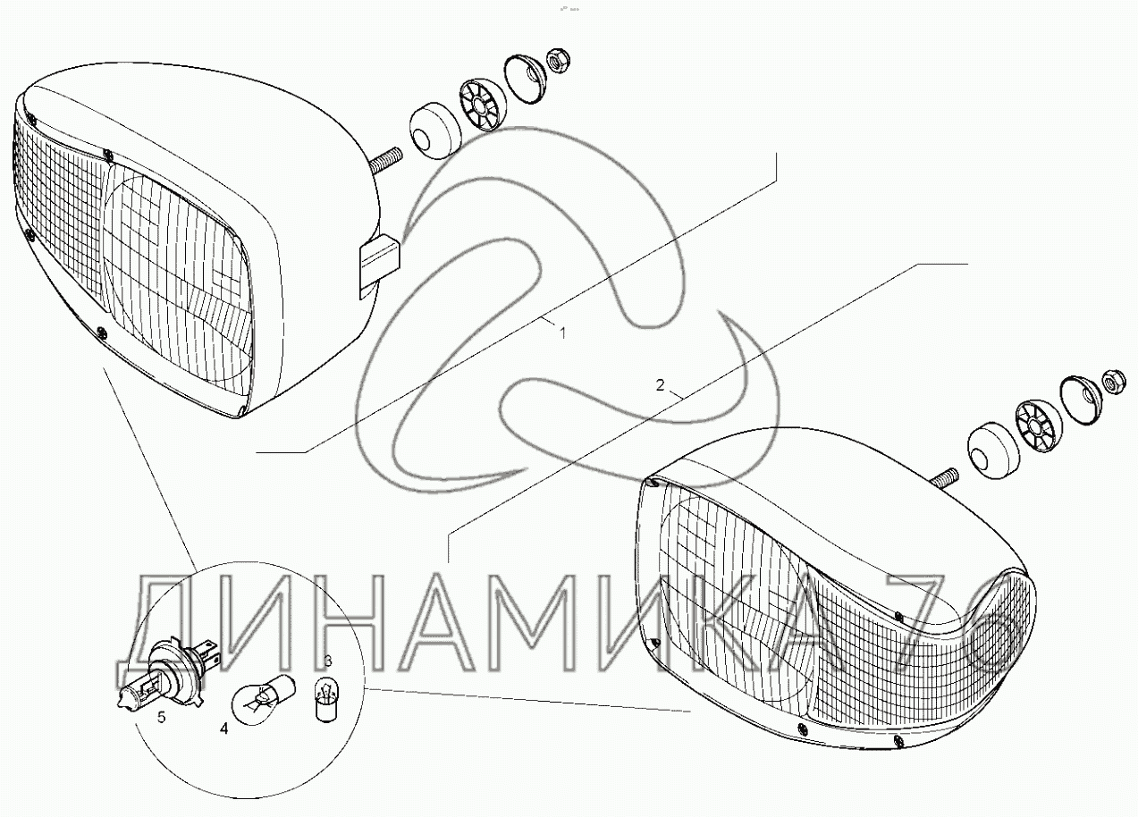 Перечень комплектующих от ПЕРЕДНИЕ ФАРЫ ОСВЕЩЕНИЯ на TLB 825