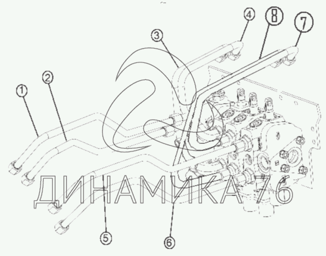 ТРУБОПРОВОДЫ 3-Х ЗОЛОТНИКОВОГО РАСПРЕДЕЛИТЕЛЯ на TLB 825 (до 2019 г.)