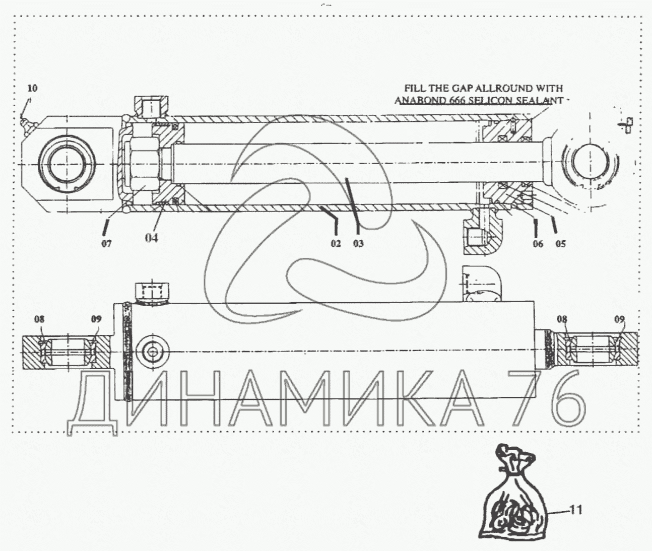 Перечень комплектующих от ЦИЛИНДР УПРАВЛЕНИЯ на TLB 825