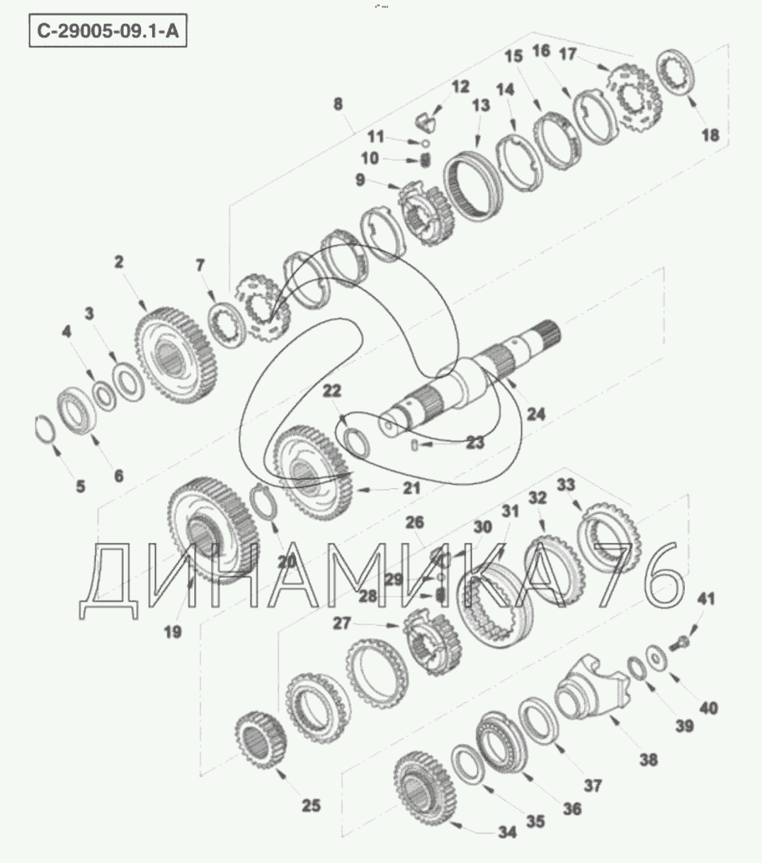 Перечень комплектующих от ВЫХОДНОЙ ВАЛ КПП ЗАДНИЙ на TLB 825