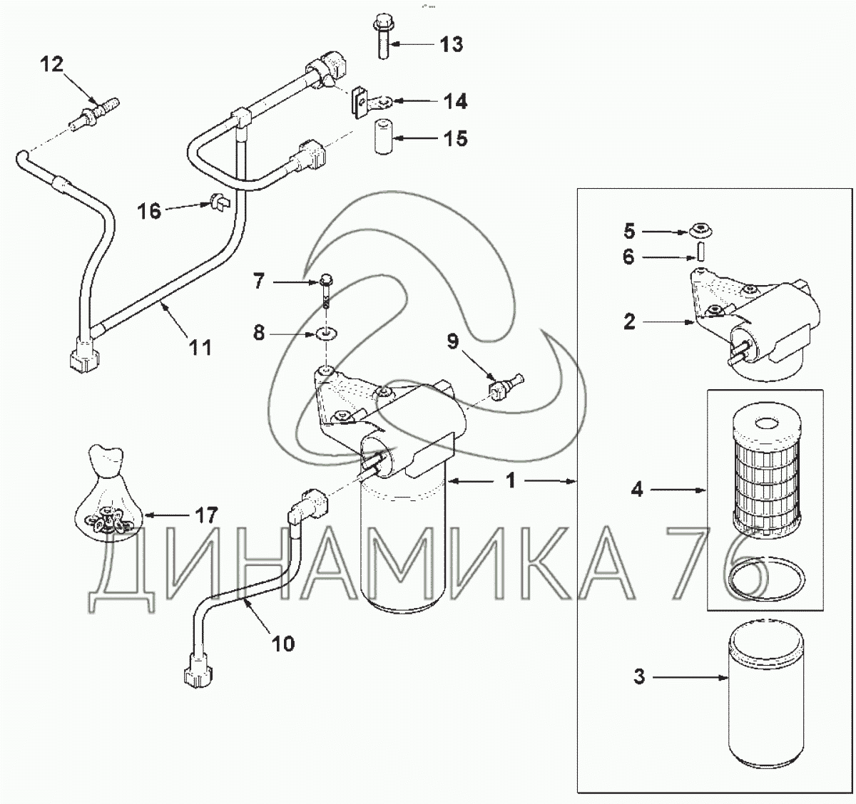 Перечень комплектующих от Фильтр топливный на TLB 935