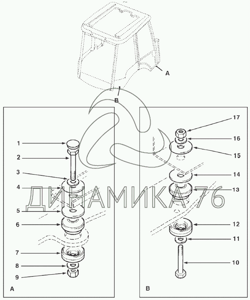 Схемы запчастей предназначены для справочных целей! Мы продаем не все запчасти от Установка кабины на TLB 935, представленные в этом списке.