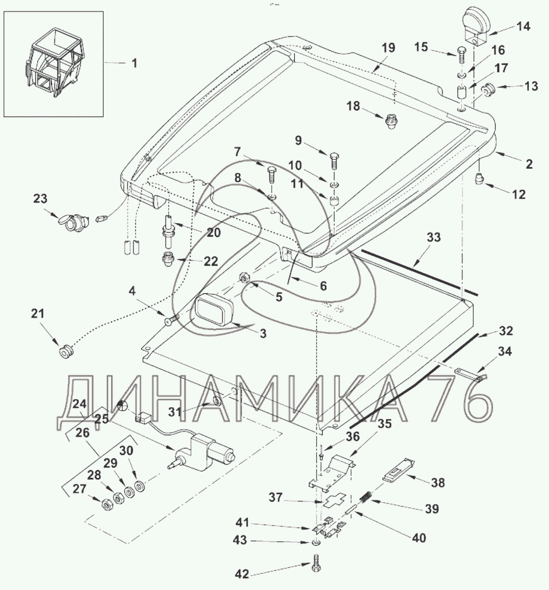 Перечень комплектующих от Внешняя крыша кабины на TLB 935