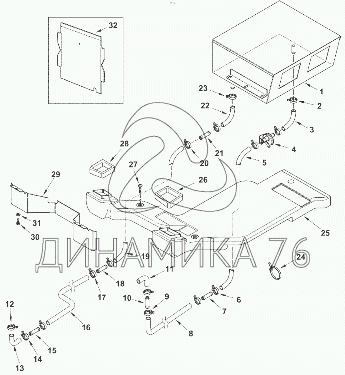 Перечень комплектующих от Передняя установка отопителя на TLB 935
