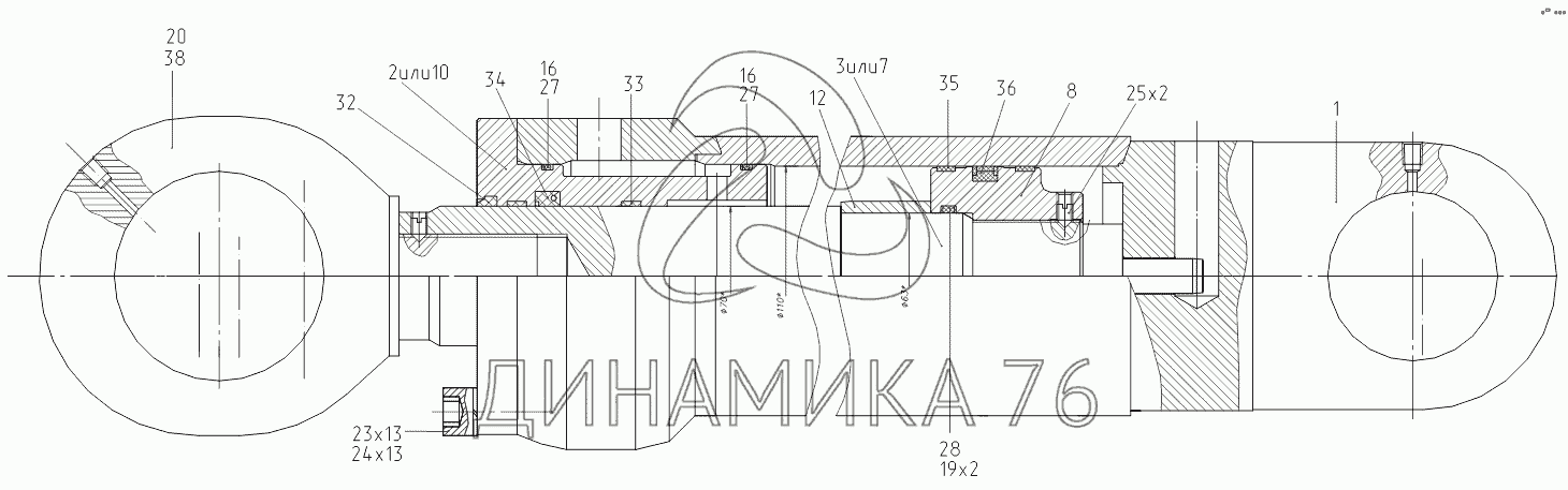 Перечень комплектующих от 313002395000 16 Гидроцилиндр (110х70х1100) на TVEX-140W