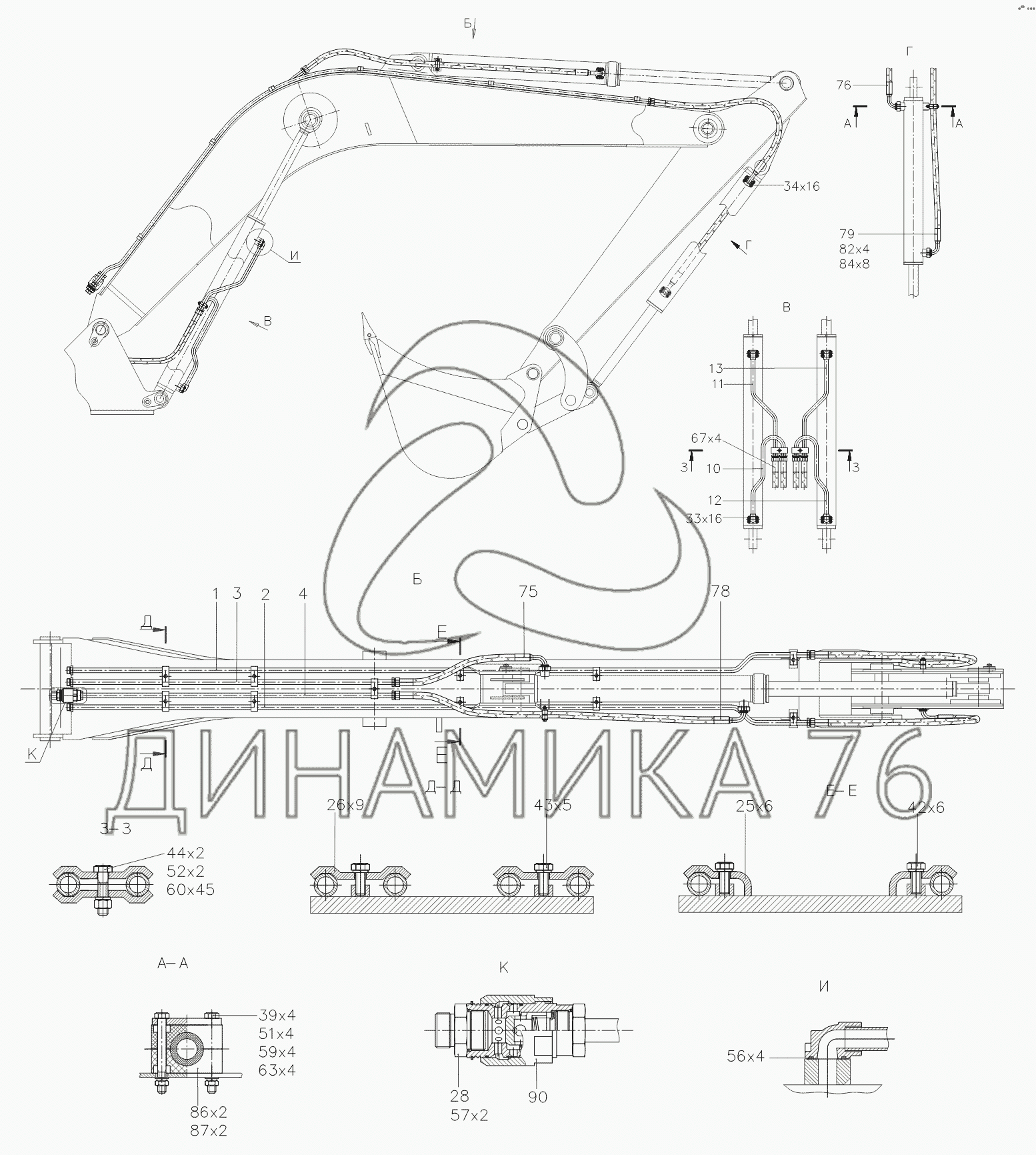 Перечень комплектующих от 314902380000 00 Трубопроводы рабочего оборудования на TVEX-140W