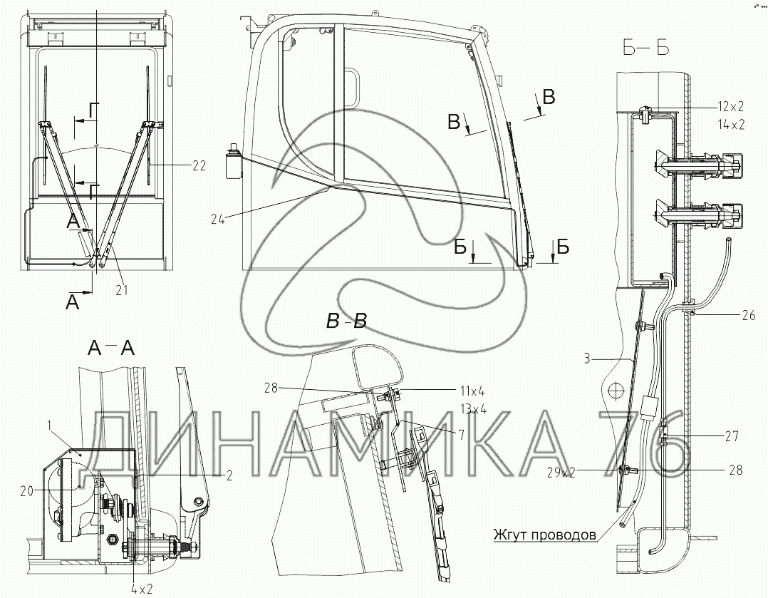 Перечень комплектующих от 001426108000 00 Установка стеклоочистителя на TVEX-180W