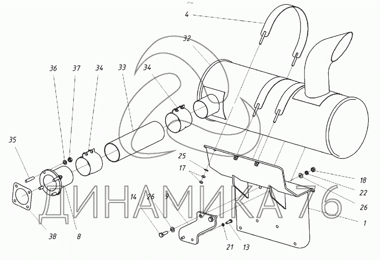 Перечень комплектующих от Установка глушителя на TX220LC