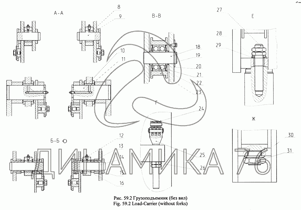 Перечень комплектующих от Грузоподъемник (без вил) на ВП-05 (2005)