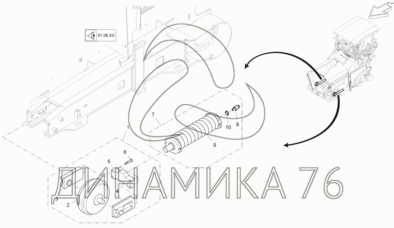 Перечень комплектующих от FRONT IDLER на SUPER 1100-3
