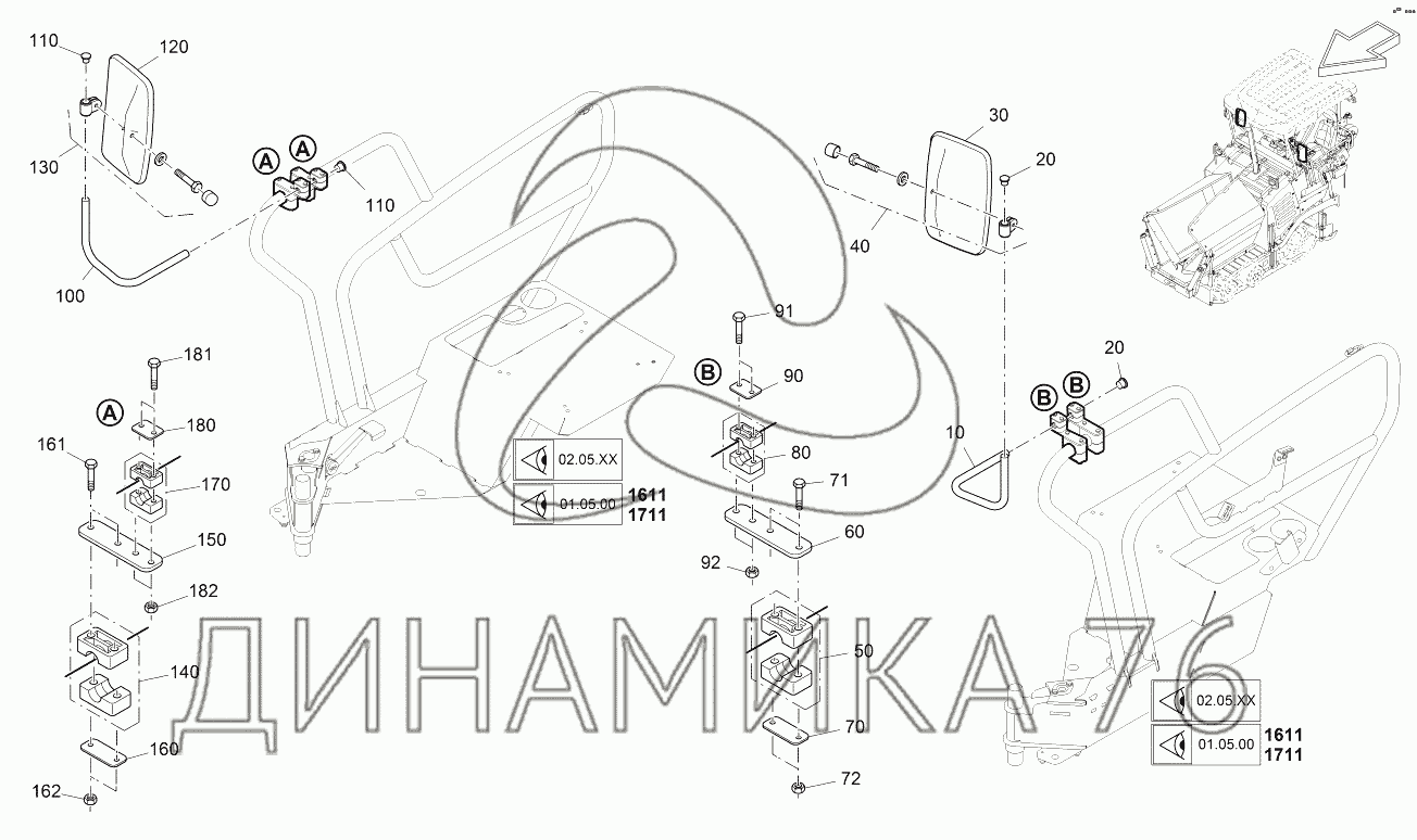 Схемы запчастей предназначены для справочных целей! Мы продаем не все запчасти от MIRROR WITHOUT ROOF на SUPER 1100-3, представленные в этом списке.