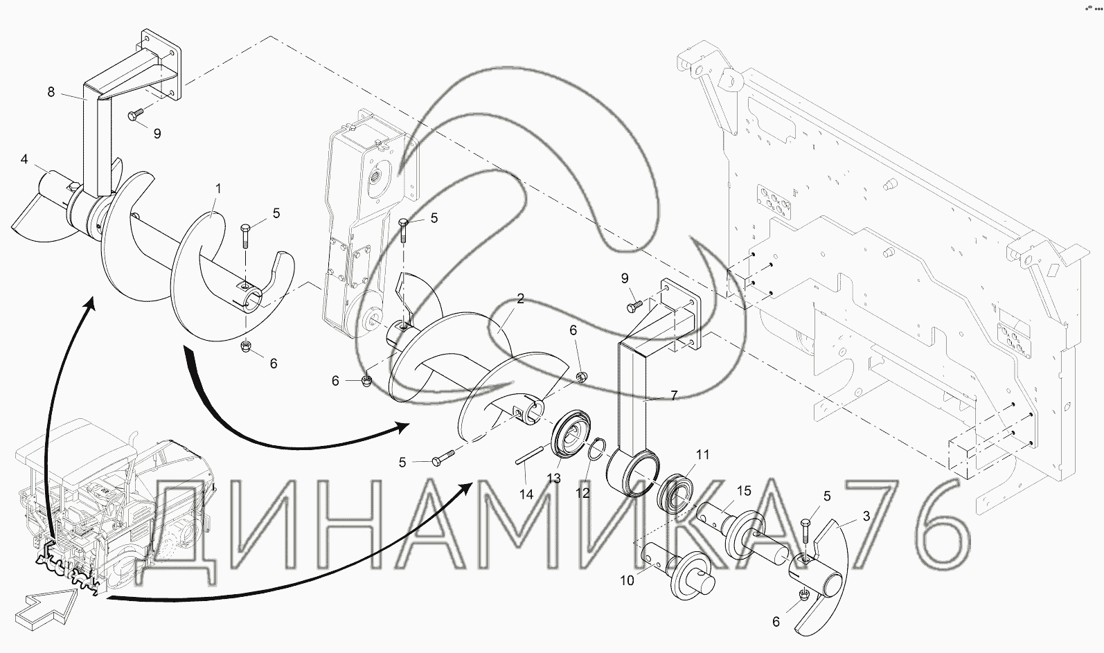 Перечень комплектующих от AUGER SHAFT WITH BEARING на SUPER 1103-2