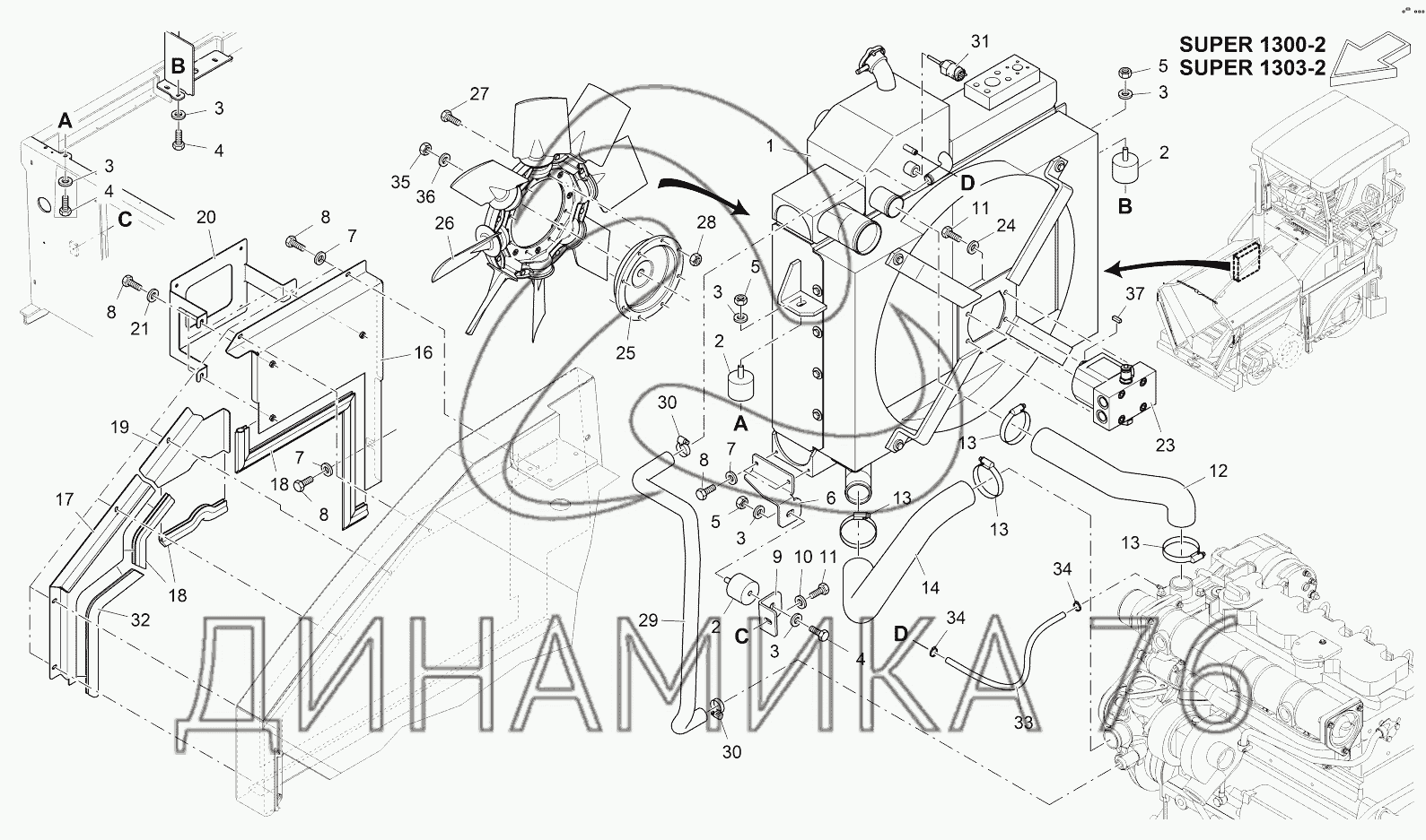 Схемы запчастей предназначены для справочных целей! Мы продаем не все запчасти от COOLING SYSTEM на SUPER 1103-2, представленные в этом списке.