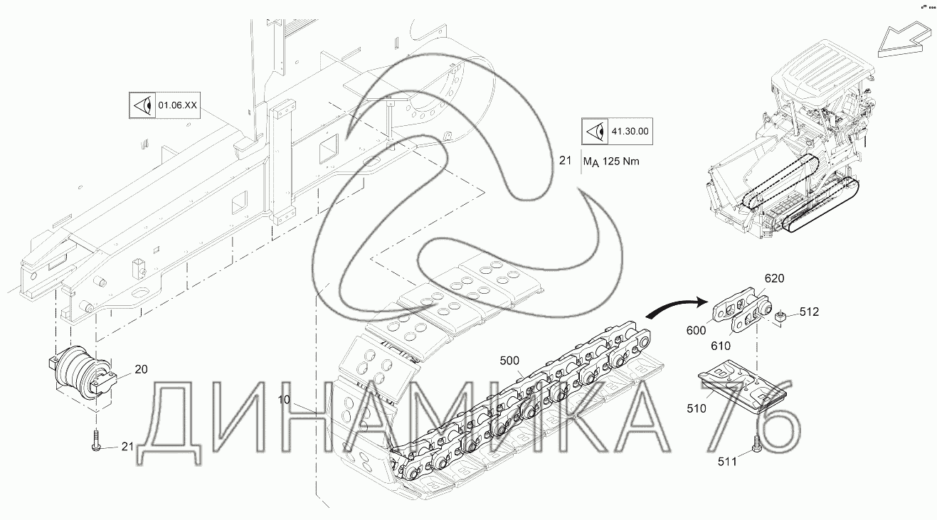 Перечень комплектующих от ROLLER/CRAWLER TRACK на SUPER 1300-3