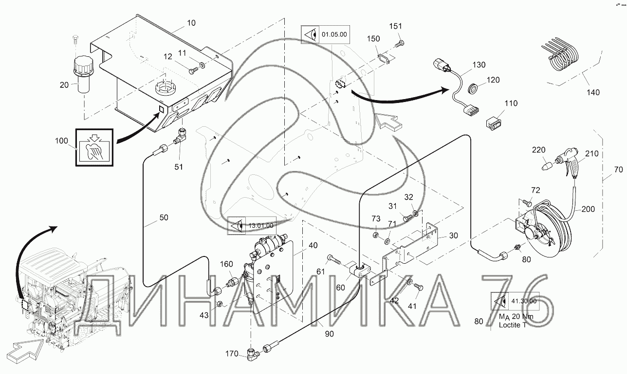Схемы запчастей предназначены для справочных целей! Мы продаем не все запчасти от WASHDOWN SYSTEM WITH TANK на SUPER 1300-3, представленные в этом списке.