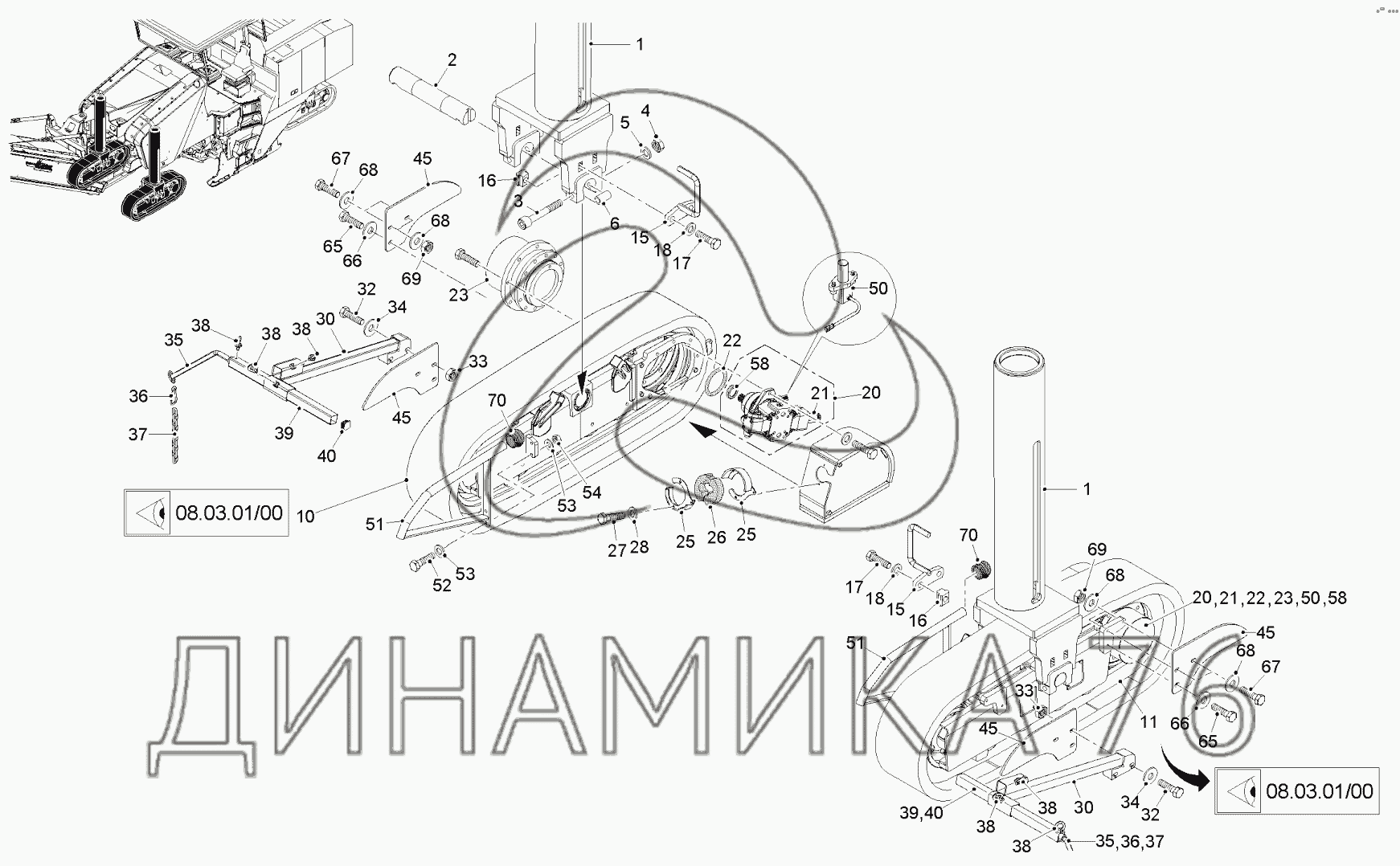 Перечень комплектующих от CRAWLER UNIT FRONT на W200