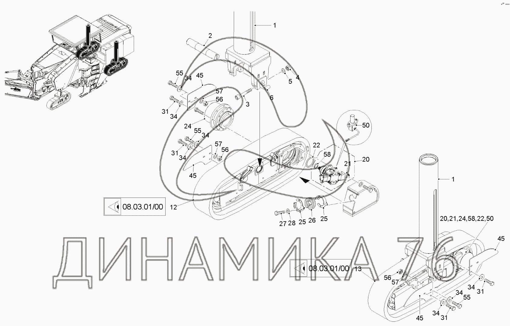Перечень комплектующих от CRAWLER UNIT REAR на W200