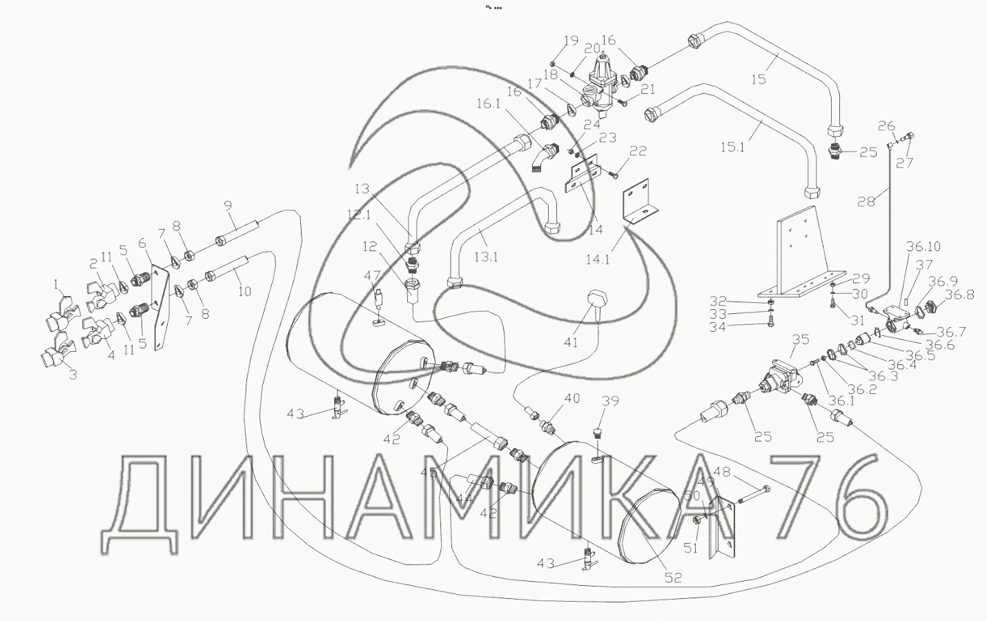 Connecting pipe assembly, 2 air reservoirs