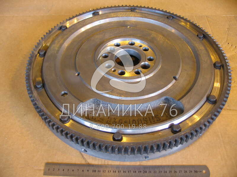 236-1005115-Н Маховик ЯМЗ (Автодизель) изготовлен из серого чугуна под зубчатый венец с модулем 3,75. Применяется на моделях двигателей ЯМЗ-236М2-1, ЯМЗ-236М2-2, ЯМЗ-236М2-4, ЯМЗ-236М2-19, ЯМЗ-236М2-29, ЯМЗ-236А.236-1005115-Н Маховик установлен на двигатели ЯМЗ-236М2 и их модификации под однодисковое сцепление. Маркирован маховик в выемке на нерабочей поверхности в отливке. Крепится к коленчатому валу болтами.